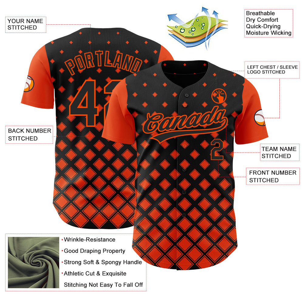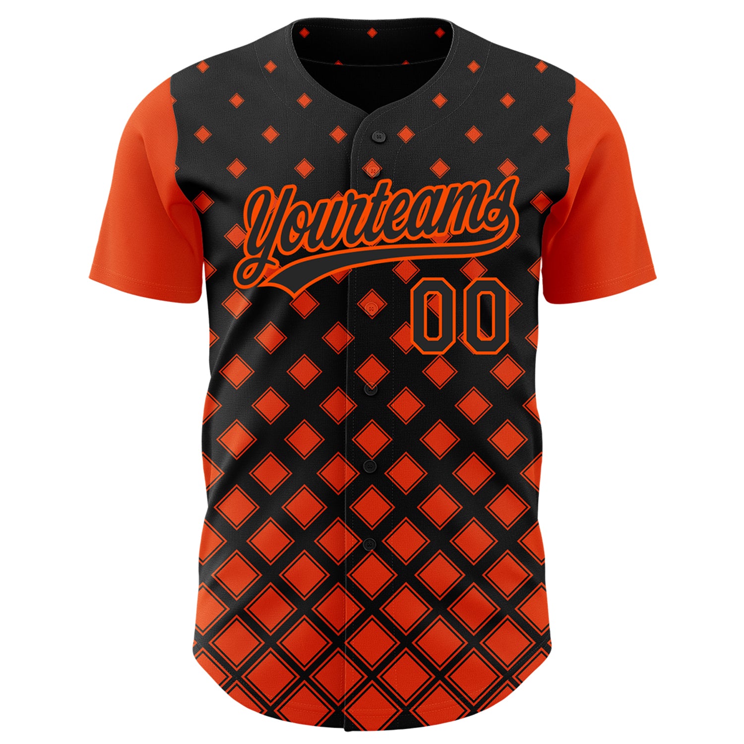 Personalized 3D Geometric Shapes Baseball Jersey in Black and Orange Personalized Black Orange 3D Geometric Shapes Baseball