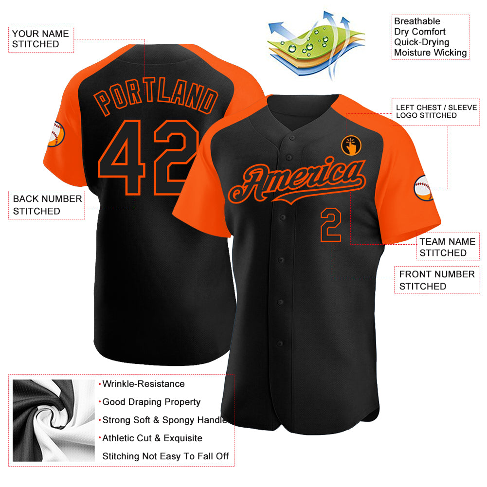 Personalized Black Orange Raglan Sleeves Baseball Jersey