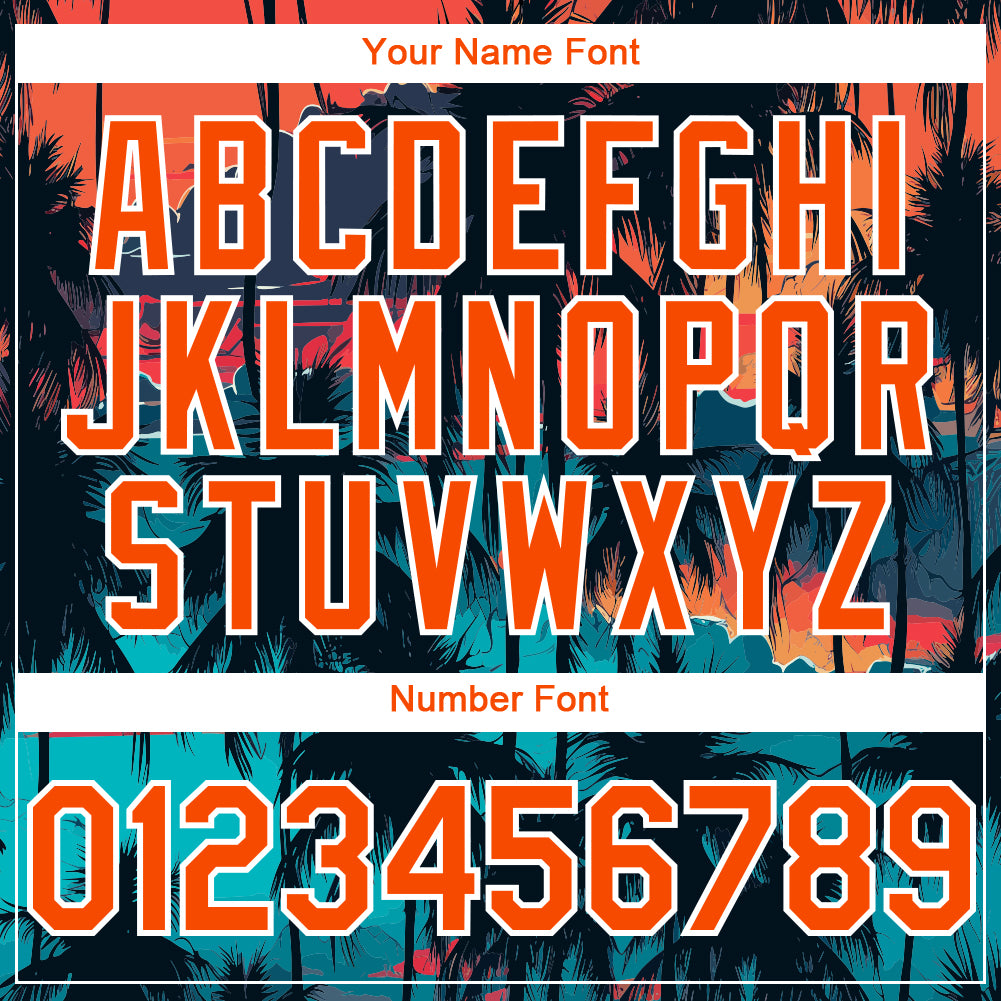 Custom Name and Number Personalized Baseball Jersey Tropical Hawaii Palms Trees 3D Pattern Black Orange-White Design Personalized