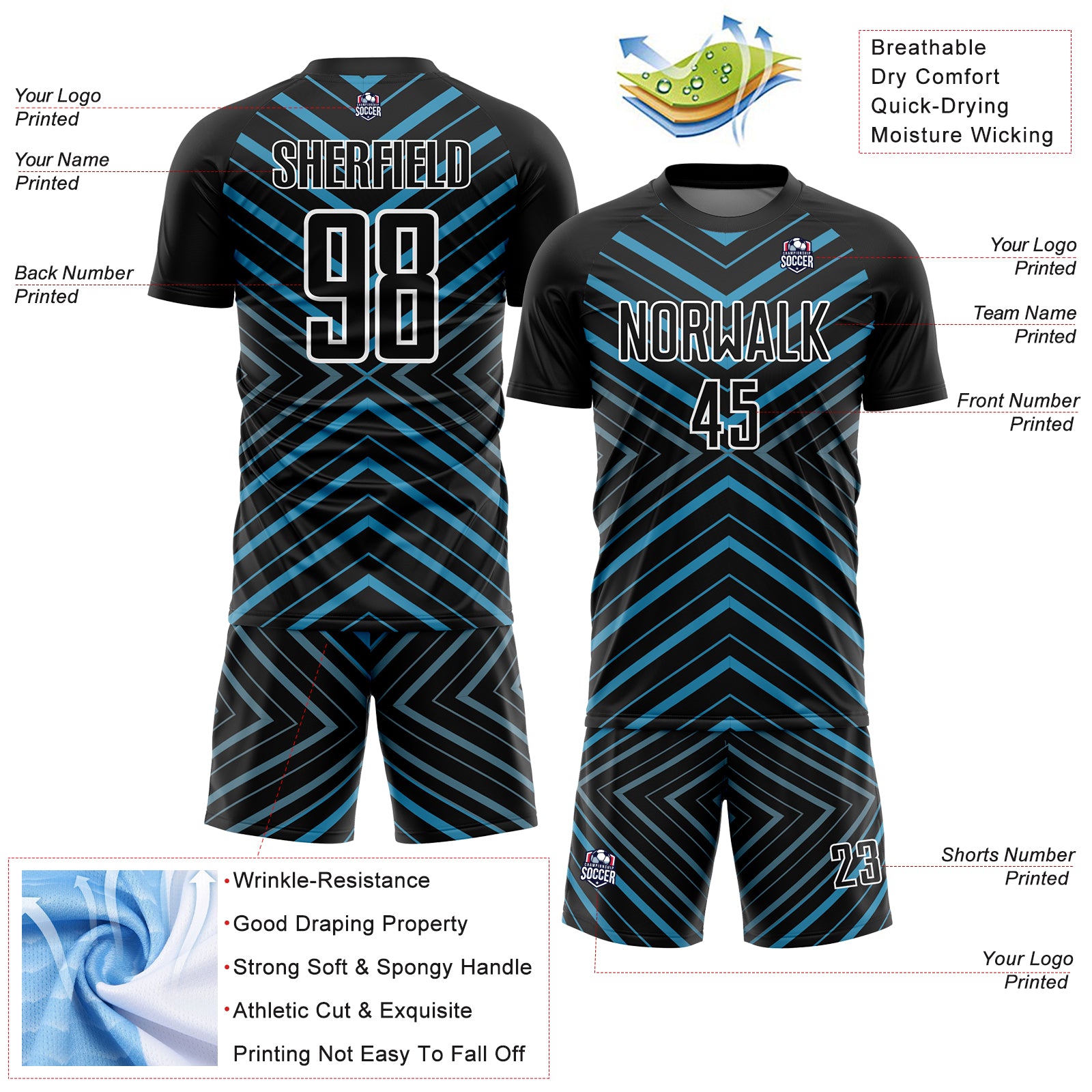 Personalized Black Panther Soccer Jersey with Blue-White Stripes Sublimation Design Personalized Black Panther Blue-White