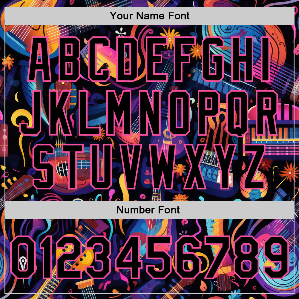 Personalized 3D Music Festival Baseball Jersey – Black Pink Musical Instruments Design Personalized Black Pink 3D Music Festival