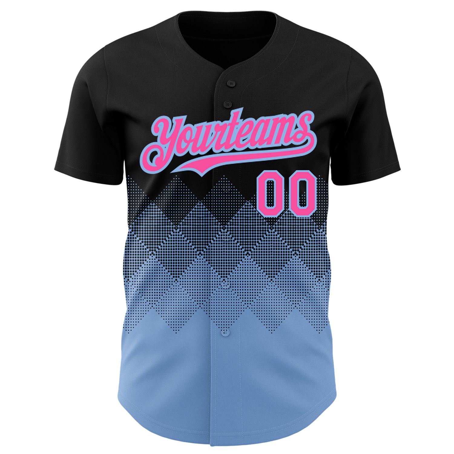 Personalized 3D Gradient Baseball Jersey with Black and Pink-Light Blue Square Shapes Personalized Black Pink-Light Blue