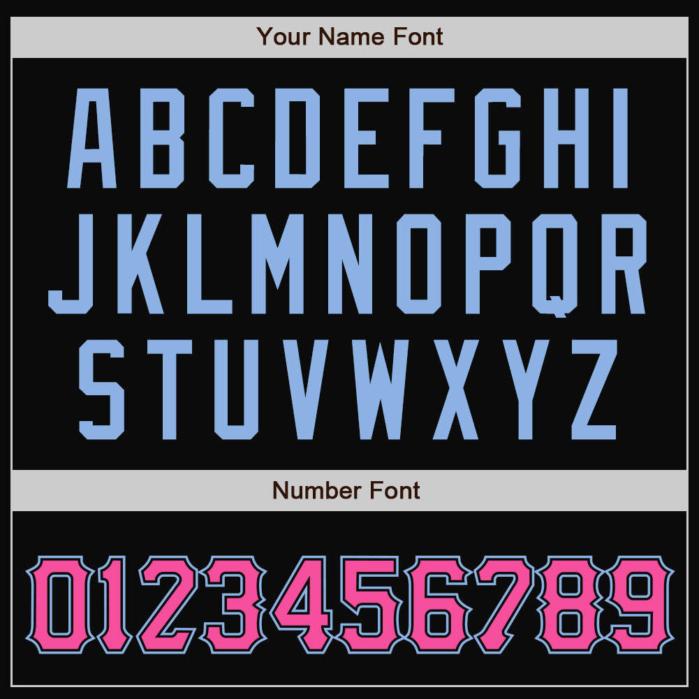 Custom Name Number Personalized Black Pink Pinstripe Light Blue Varsity Letterman Bomber Full-Snap Jacket Personalized Black