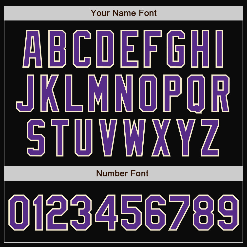 Personalized Black Purple-Cream Bomber Full-Snap Varsity Letterman Two Tone Jacket Team Custom Name and Number