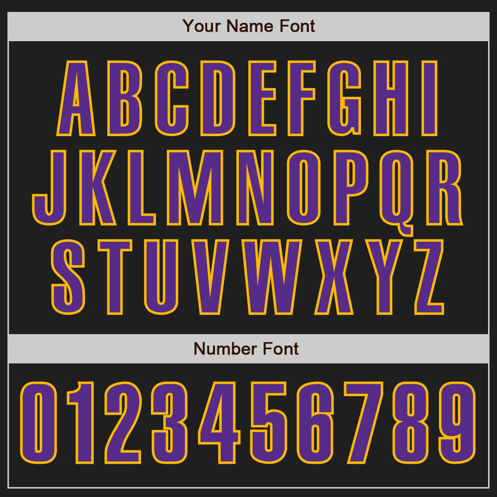 Personalized Baseball Jersey Black Purple Gold – Custom Name & Number 6 Personalized Black Purple-Gold Baseball Jersey 6