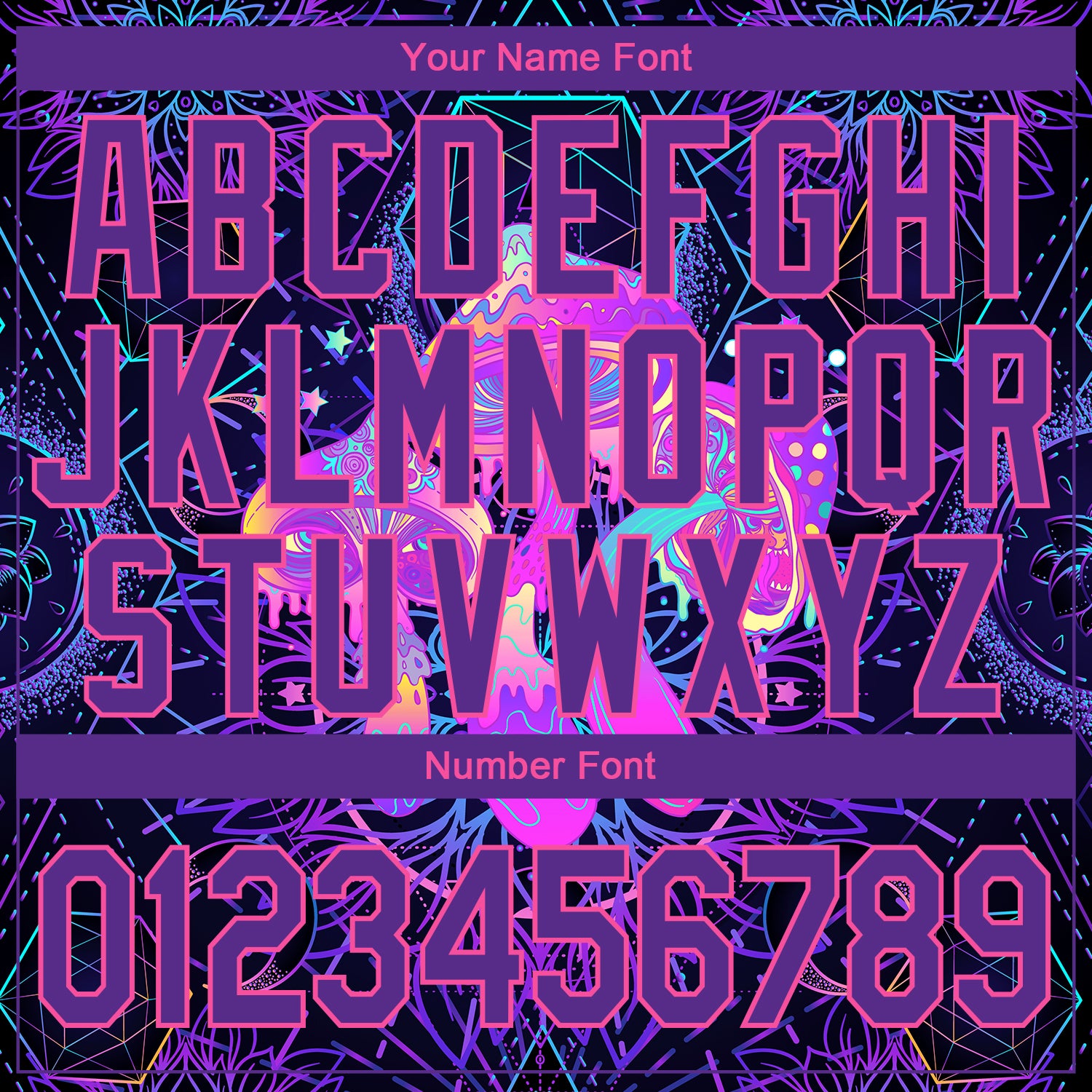 Personalized Psychedelic 3D Magic Mushrooms Black Purple-Pink T-Shirt Over Sacred Geometry Hallucination Performance Personalized