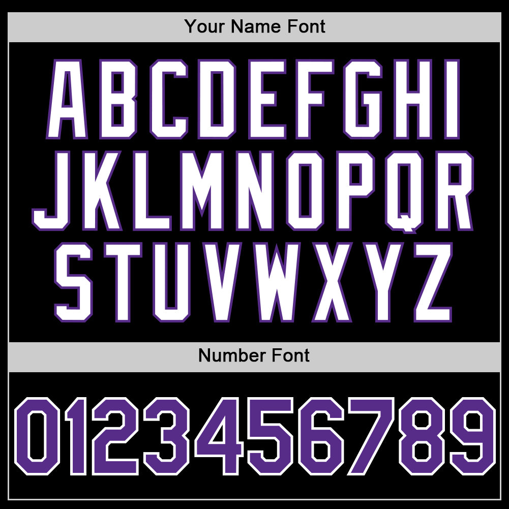 Personalized Two Tone Bomber Hoodie Jacket Black Purple White Full-Snap Varsity Letterman Personalized Black Purple-White