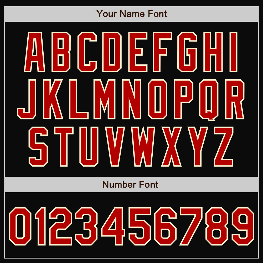 Personalized Black Red-Cream Bomber Full-Snap Varsity Letterman Two Tone Jacket Team Custom Name and Number