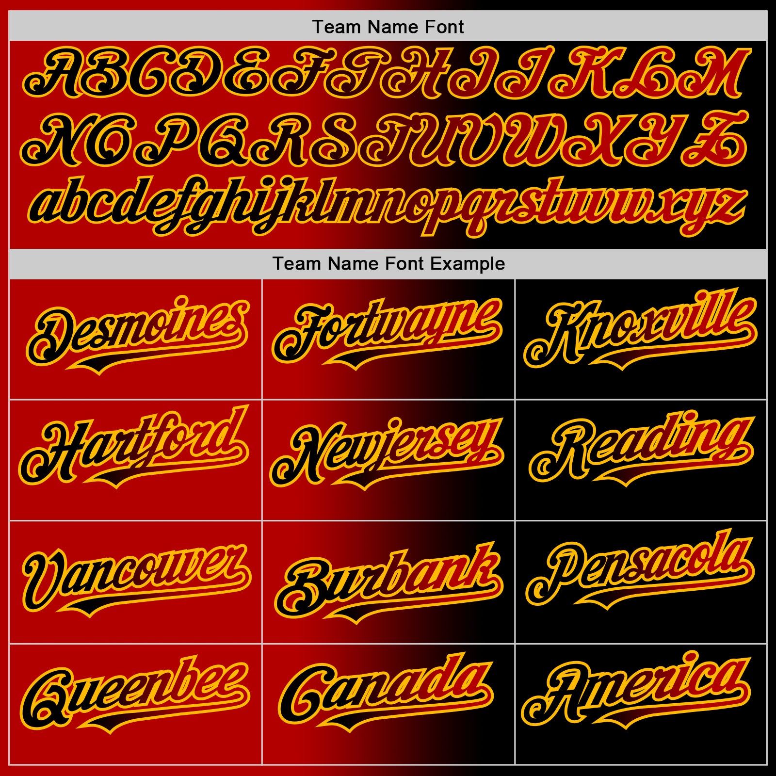 Personalized Black and Red Gradient Baseball Jersey – Stylish Fashion Wear Personalized Black Red-Gold Gradient Fashion Baseball