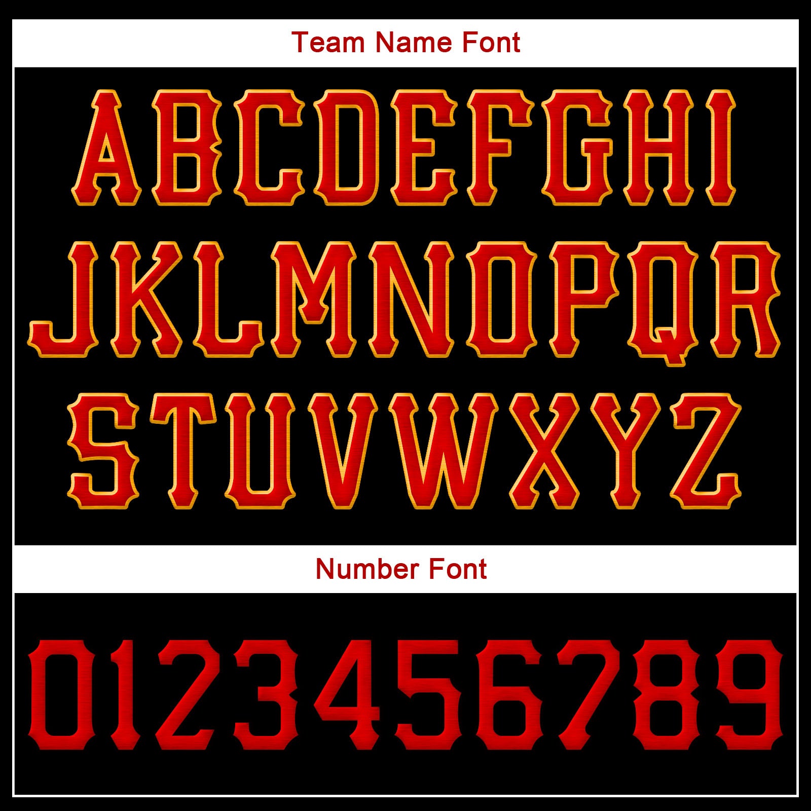 Personalized Black Red-Gold Stitched Adjustable Snapback Hat Team Custom Name and Number
