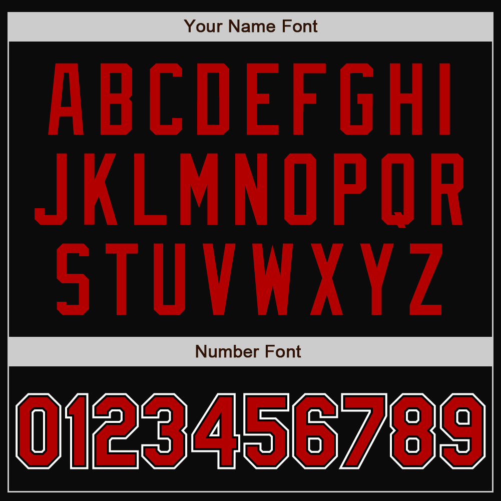 Personalized Black Red-Gray Bomber Full-Snap Varsity Letterman Two Tone Jacket Team Custom Name and Number