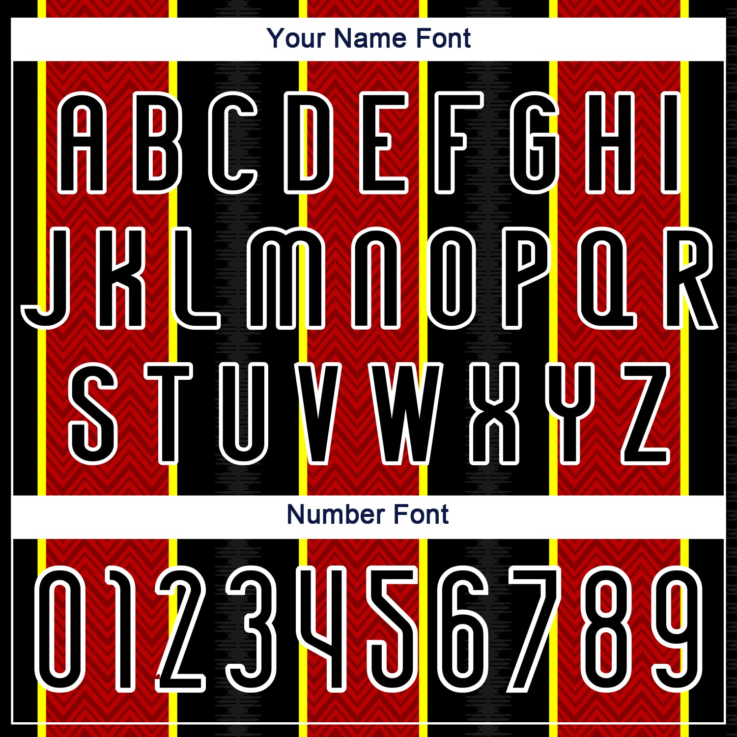 Custom Sublimation Volleyball Jersey with Personalized Name & Number, Black Red-Light Yellow Lines Team Uniform Personalized
