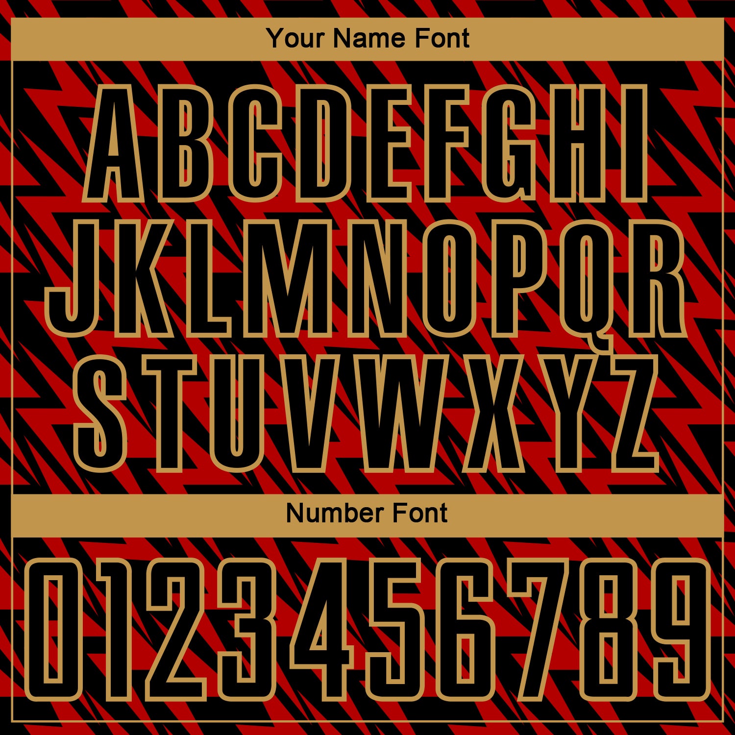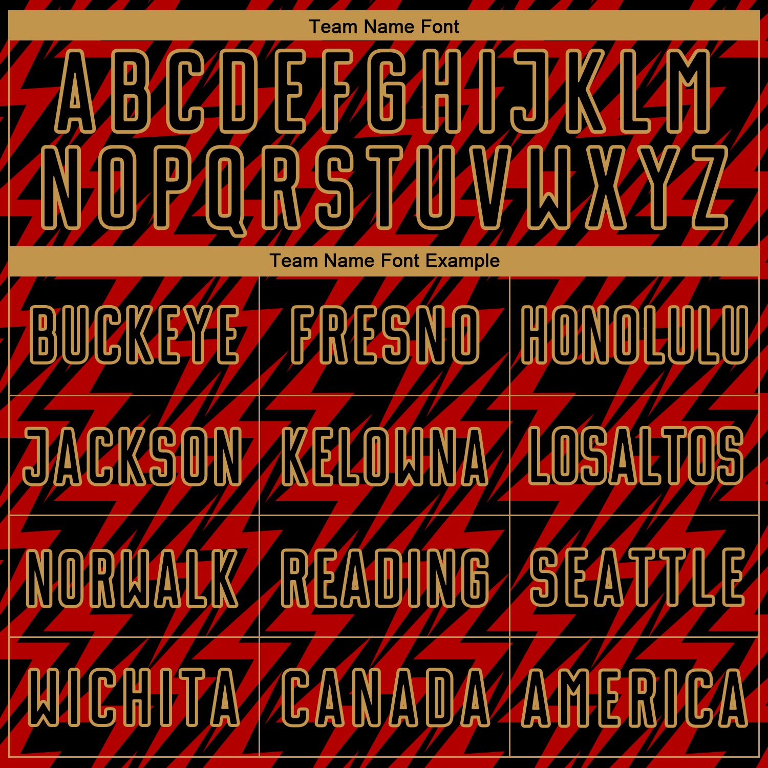 Custom Name Number Soccer Jersey – Personalized Black Red Old Gold Lightning Sublimation Team Uniform Personalized Black