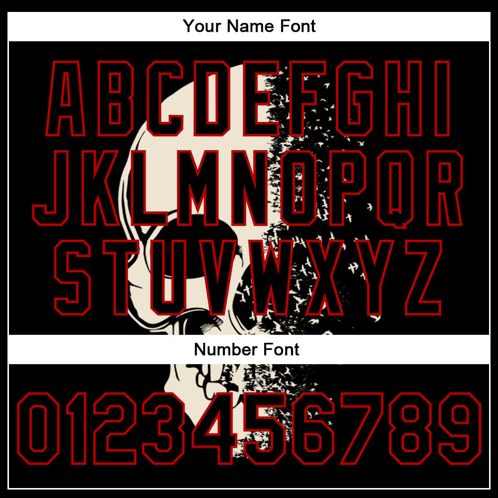 Personalized Black Red Skull Fashion 3D Bomber Full-Snap Varsity Letterman Jacket