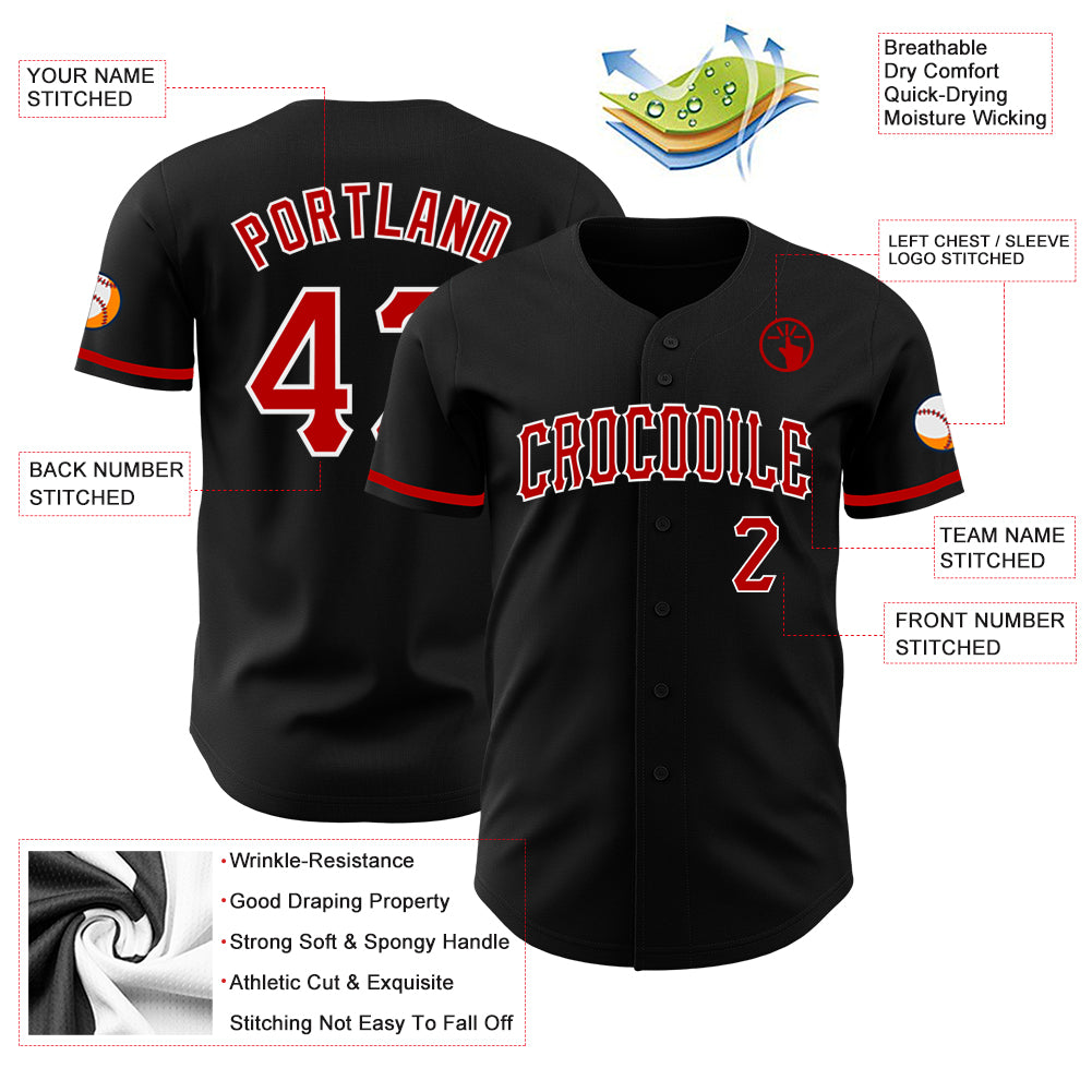 Personalized Black Red White Baseball Jersey for Men – Custom Team Sportswear Personalized Black Red-White Baseball Jersey