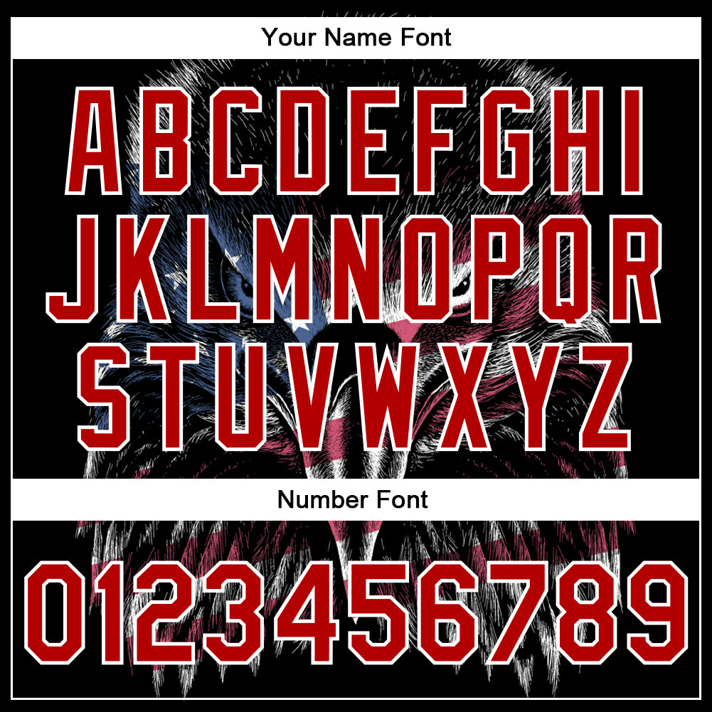 Personalized 3D Eagle American Flag Bomber Varsity Letterman Jacket – Black Red-White Full-Snap Personalized Black Red-White