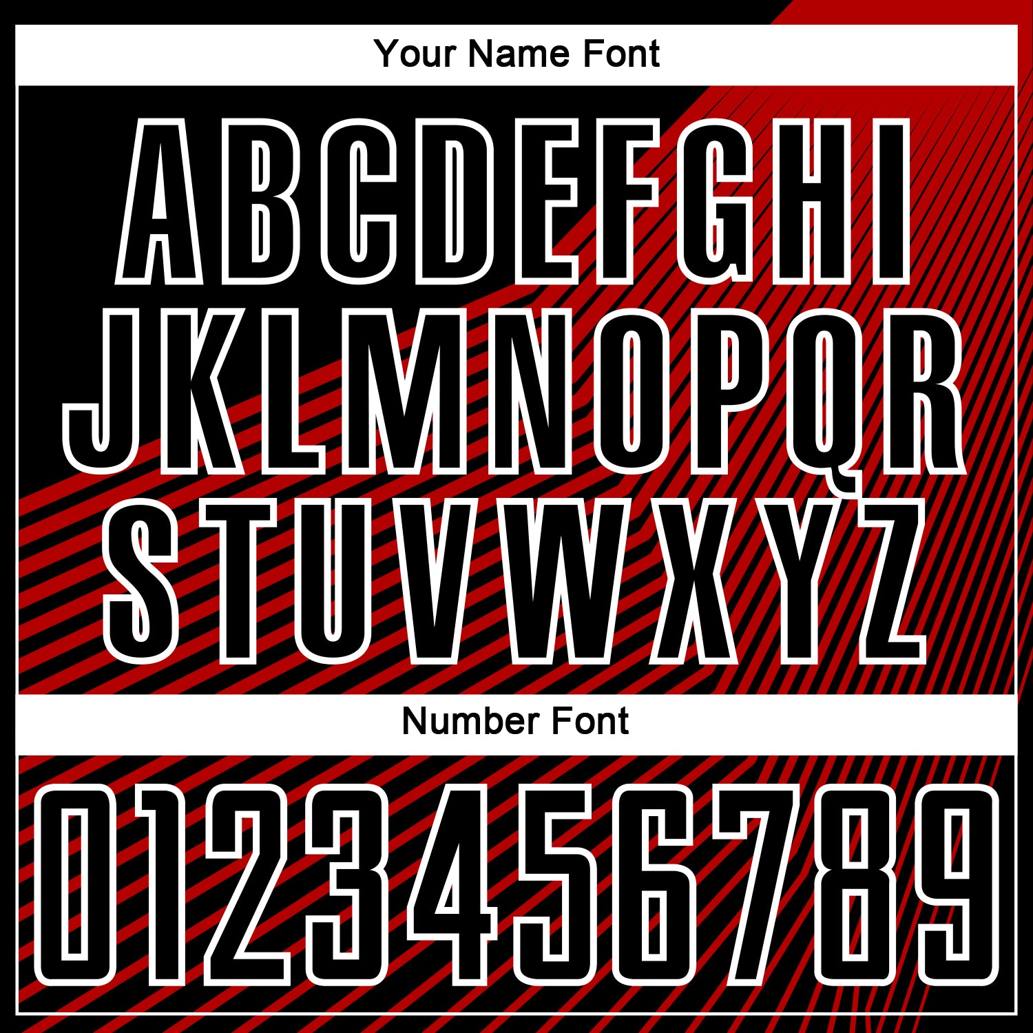 Personalized Soccer Uniform Jersey – Black Red-White Lines, Custom Sublimation Design, Size 3 Personalized Black Red-White
