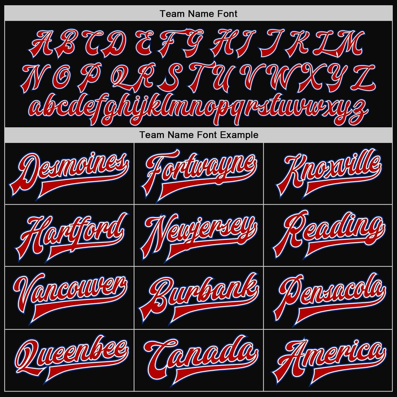 Personalized Black Royal-Red Bomber Full-Snap Varsity Letterman Two Tone Jacket Team Custom Name and Number