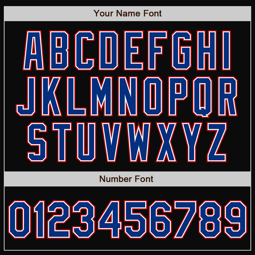 Custom Name and Number Varsity Letterman Jacket Black Royal-Red Bomber Two Tone Full-Snap Personalized Black Royal-Red Bomber