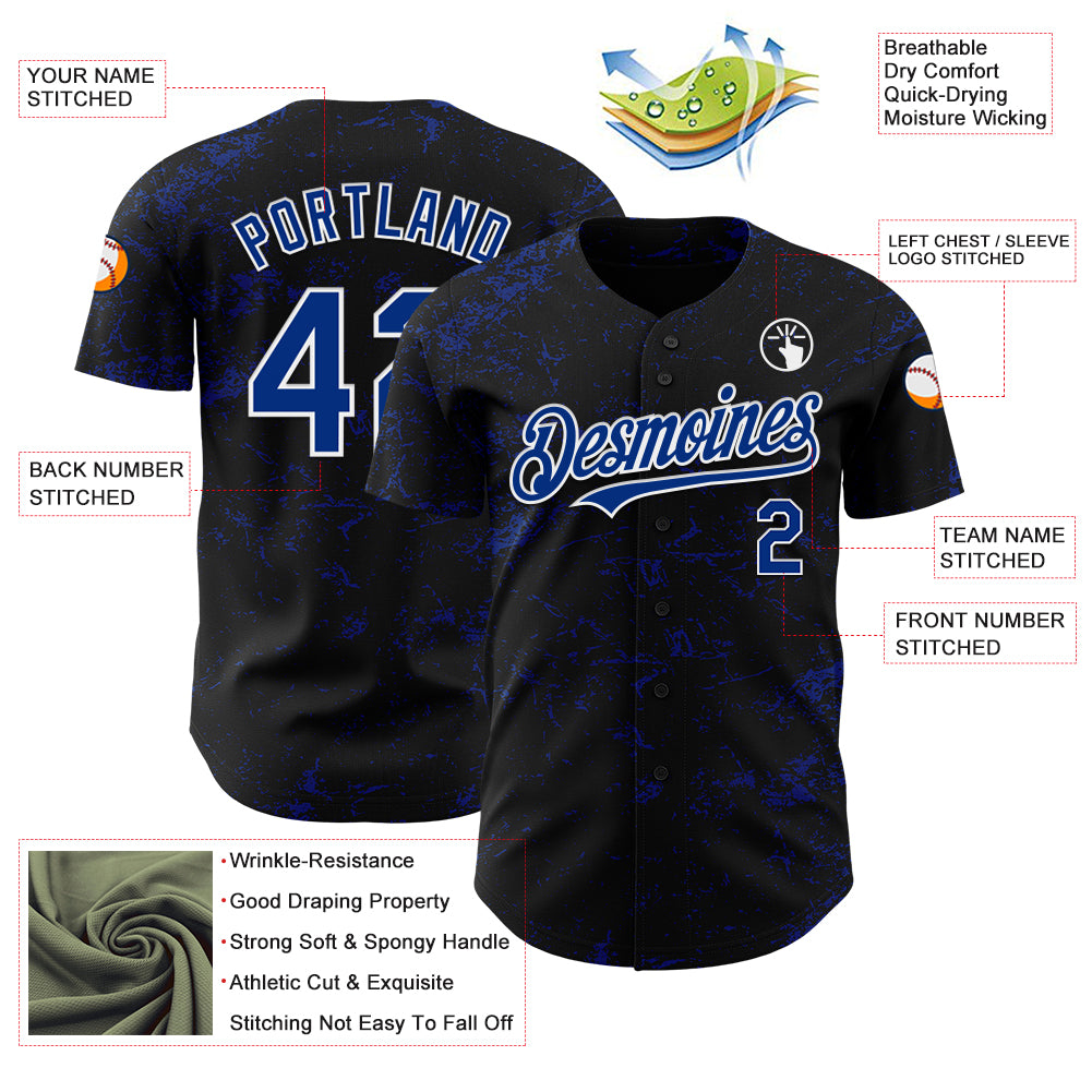 Personalized Black Royal-White 3D Pattern Design Abstract Splatter Texture Authentic Baseball Jersey Team Custom Name and Number