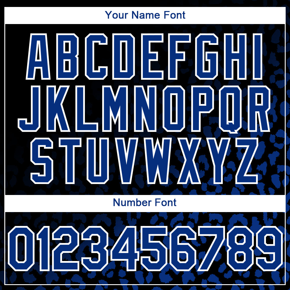 Custom Name and Number Personalized Leopard Print Baseball Jersey, Black Royal-White 3D Pattern Design Authentic Fashion
