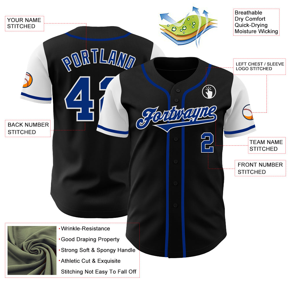 Personalized Black Royal-White Authentic Two Tone Baseball Jersey Team Custom Name and Number