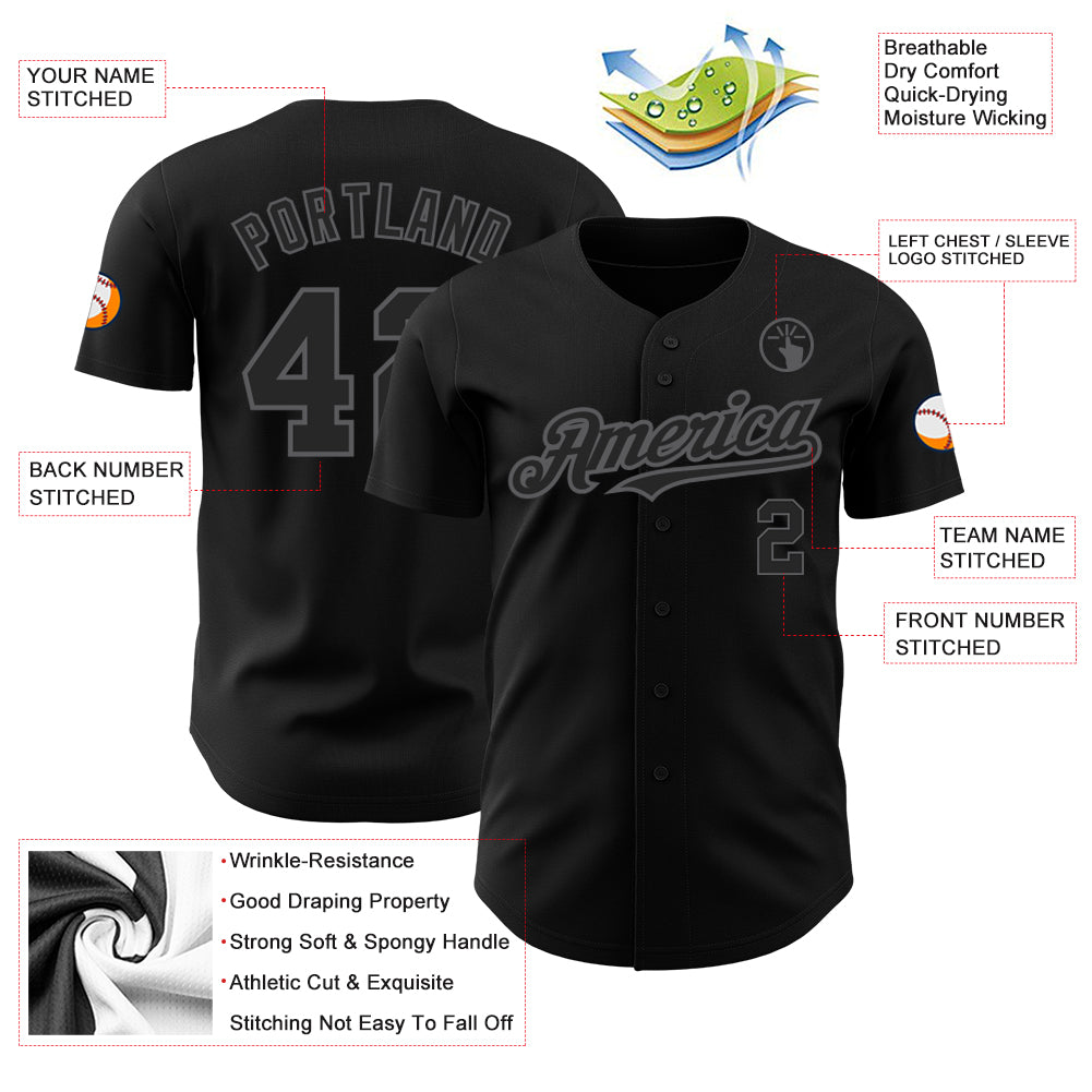 Personalized Gray Black Steel Baseball Jersey for Custom Team Apparel Personalized Black Steel Gray Baseball Jersey