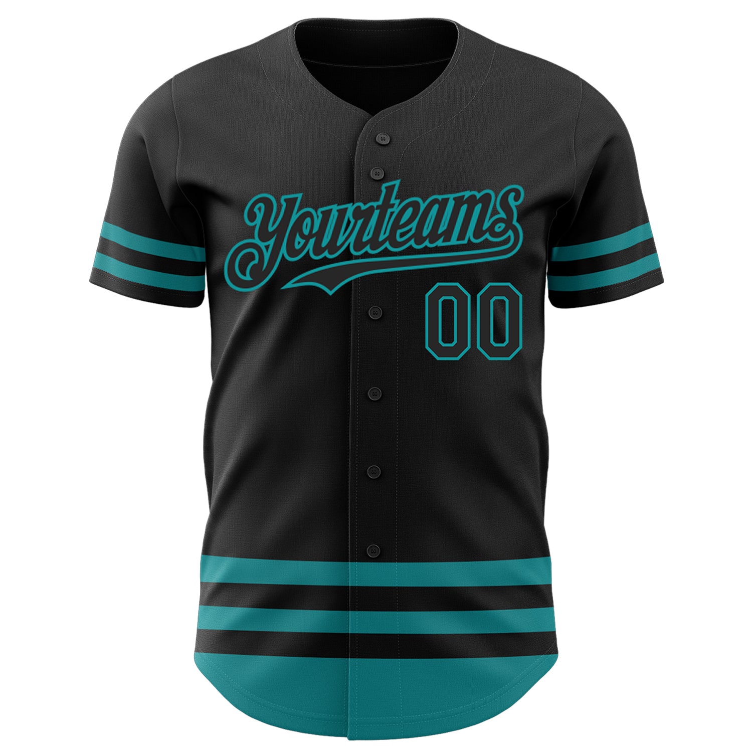 Personalized Black Teal Line Baseball Jersey – Custom Sports Apparel for Fans Personalized Black Teal Line Baseball Jersey