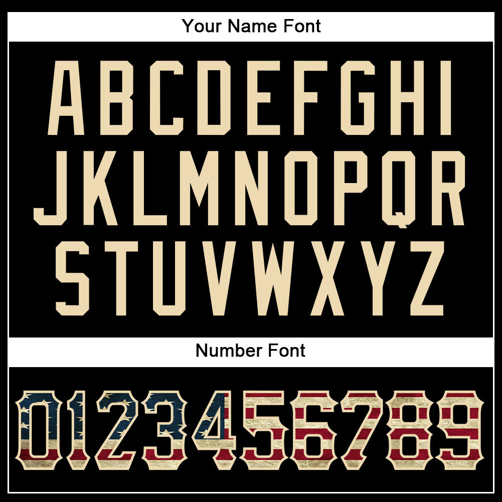 Personalized Vintage USA Flag Baseball Jersey in Black and Cream Personalized Black Vintage USA Flag-Cream Baseball Jersey