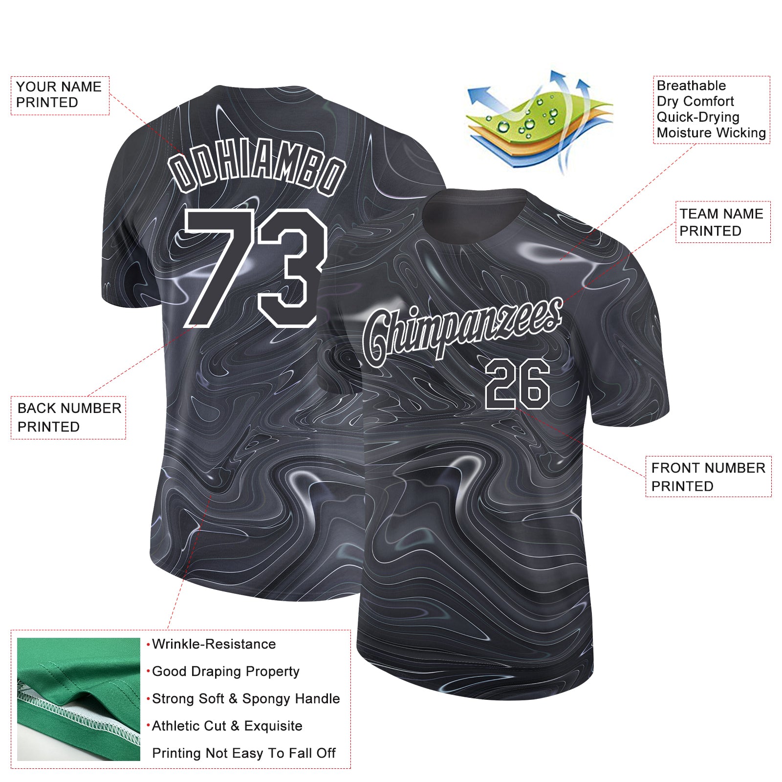 Personalized Black White 3D Pattern Design Abstract Liquid Marbling Fluid Art Performance T-Shirt Team Custom Name and Number