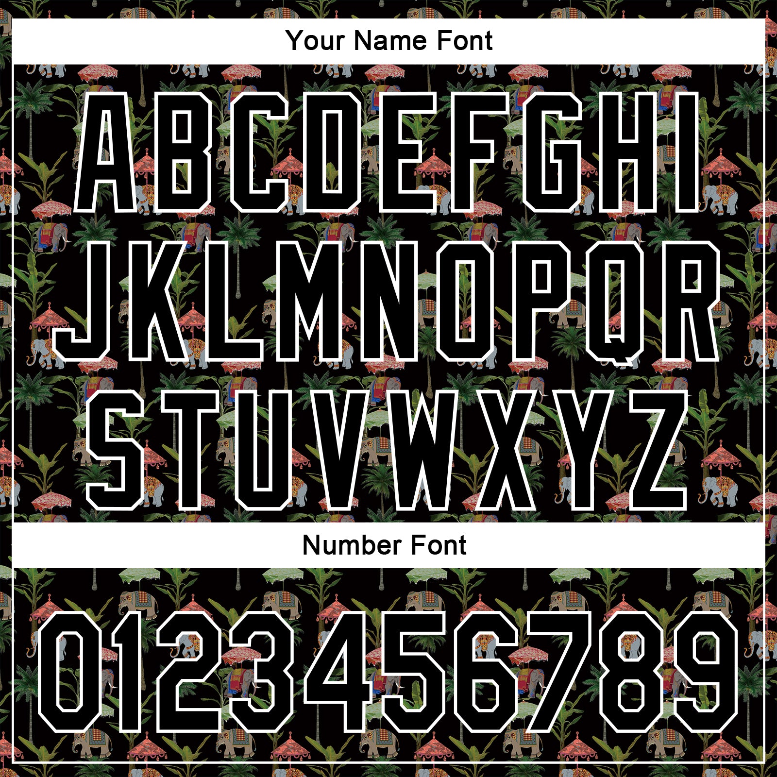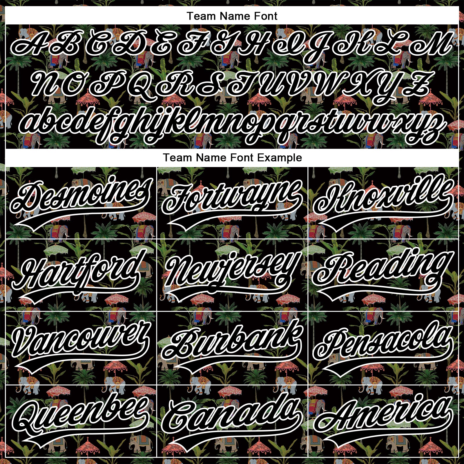 Custom Name and Number Baseball Jersey with 3D Pattern Elephant and Palm Trees – Personalized Black and White Design Personalized
