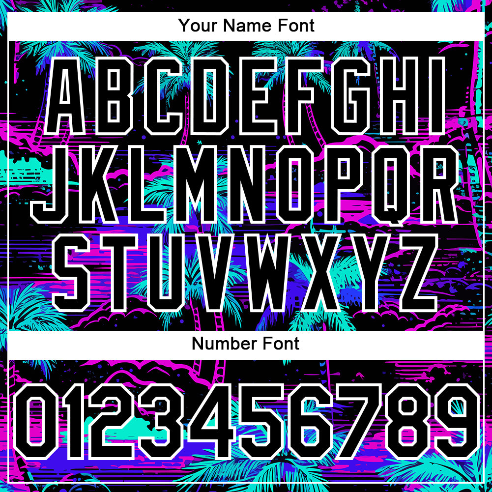 Custom Name Number Beach Jersey with 3D Black White Palm Trees Design – Authentic Hawaii Baseball Jersey Personalized Black