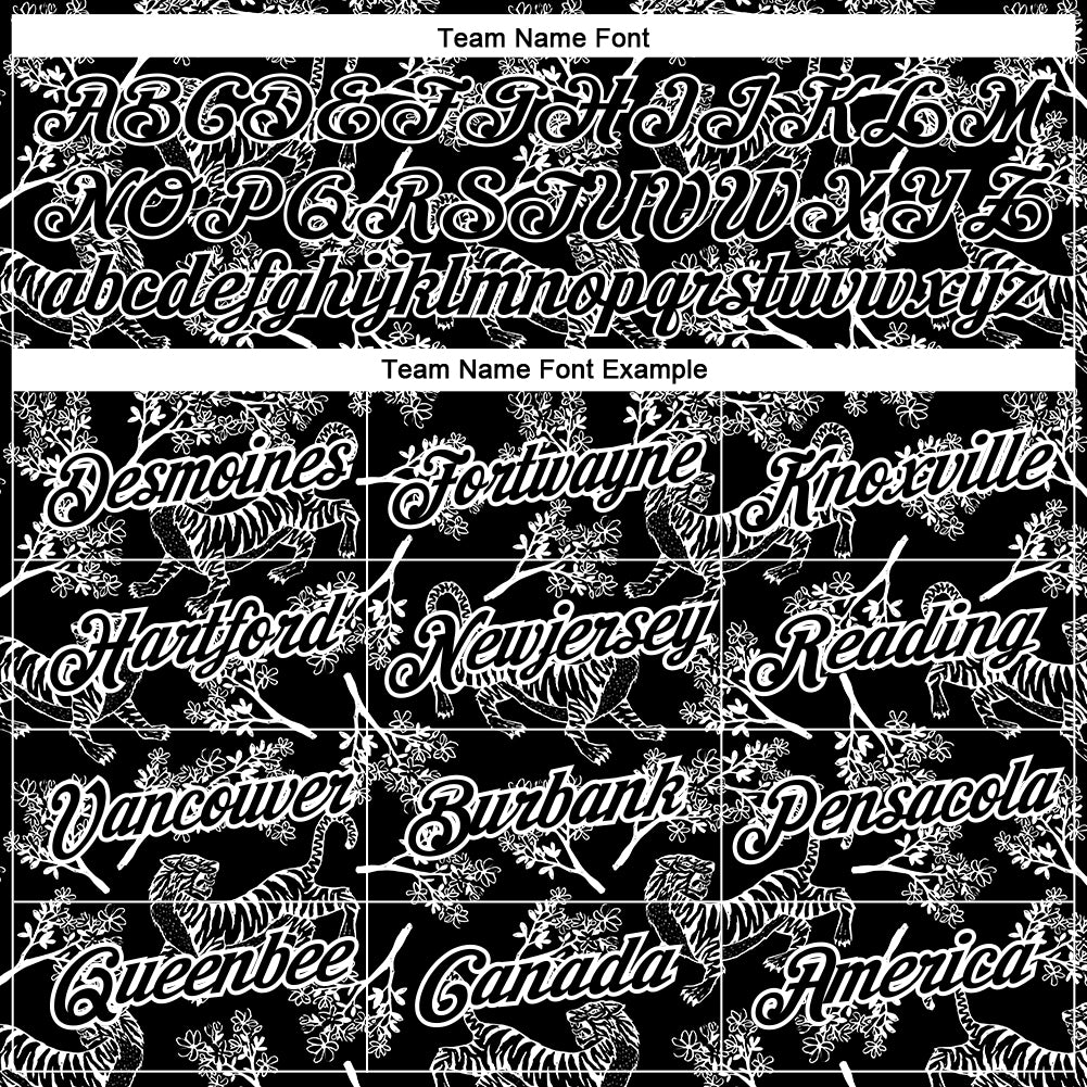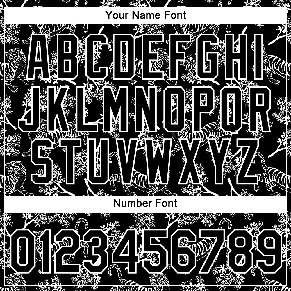 Custom Tiger Performance T-Shirt with Personalized Name and Number – Black White 3D Pattern Design Personalized Black White