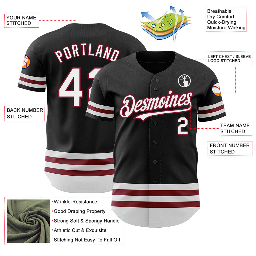 Personalized Black White-Crimson Line Baseball Jersey