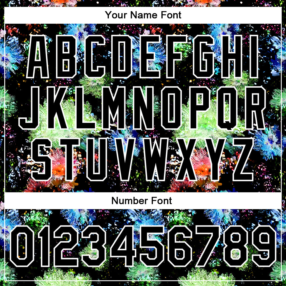 Custom Name Number 3D Pattern Black White Glitter Bloom Varsity Bomber Full-Snap Letterman Jacket Personalized Black White