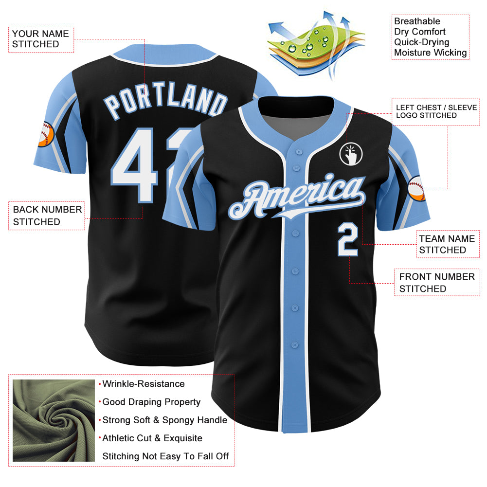 Personalized Black White-Light Blue 3 Colors Arm Shapes Authentic Baseball Jersey Team Custom Name and Number