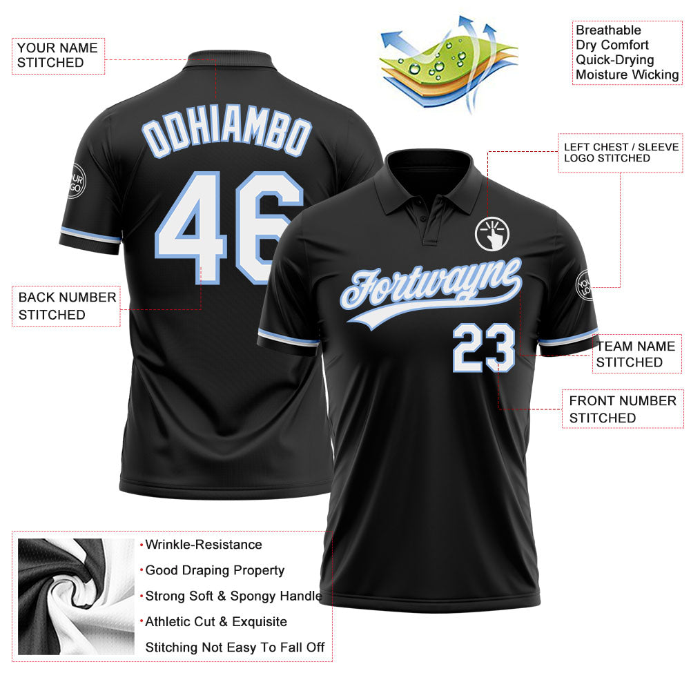 Personalized Black White-Light Blue Performance Vapor Golf Polo Shirt Team Custom Name and Number