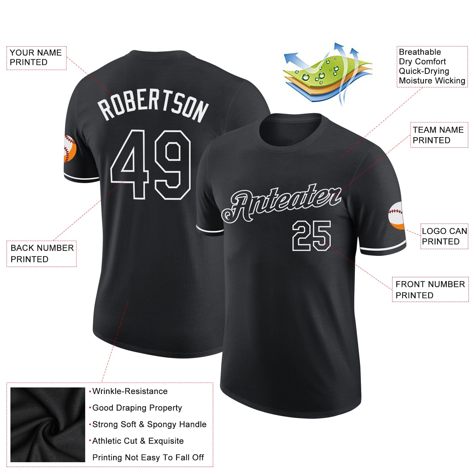 Customizable Black and White Performance T-Shirt for Men and Women Personalized Black White Performance T-Shirt