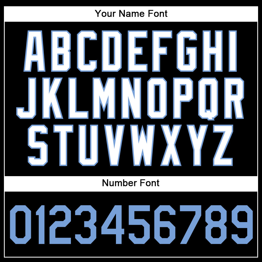 Personalized Black and White Pinstripe Baseball Jersey with Light Blue Accents Personalized Black White Pinstripe Light Blue-White