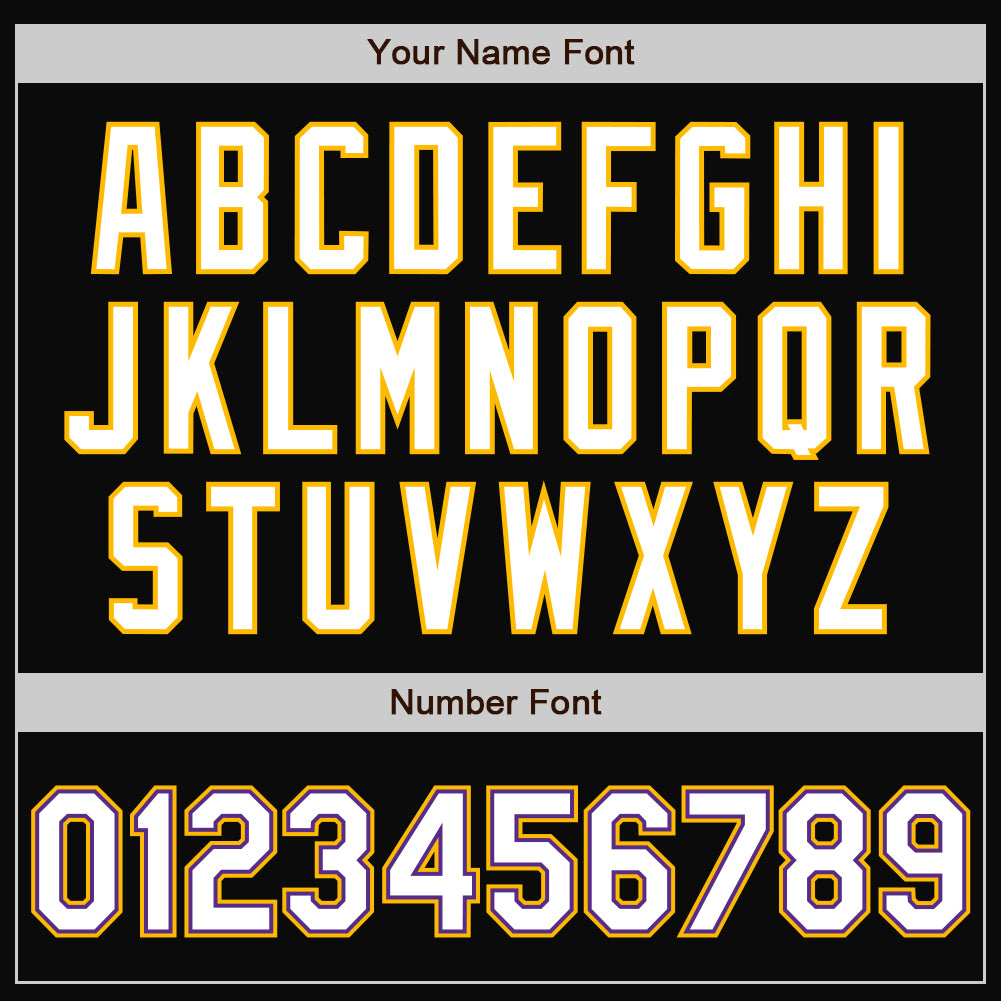 Personalized Black White Purple-Gold Bomber Full-Snap Varsity Letterman Jacket Team Custom Name and Number