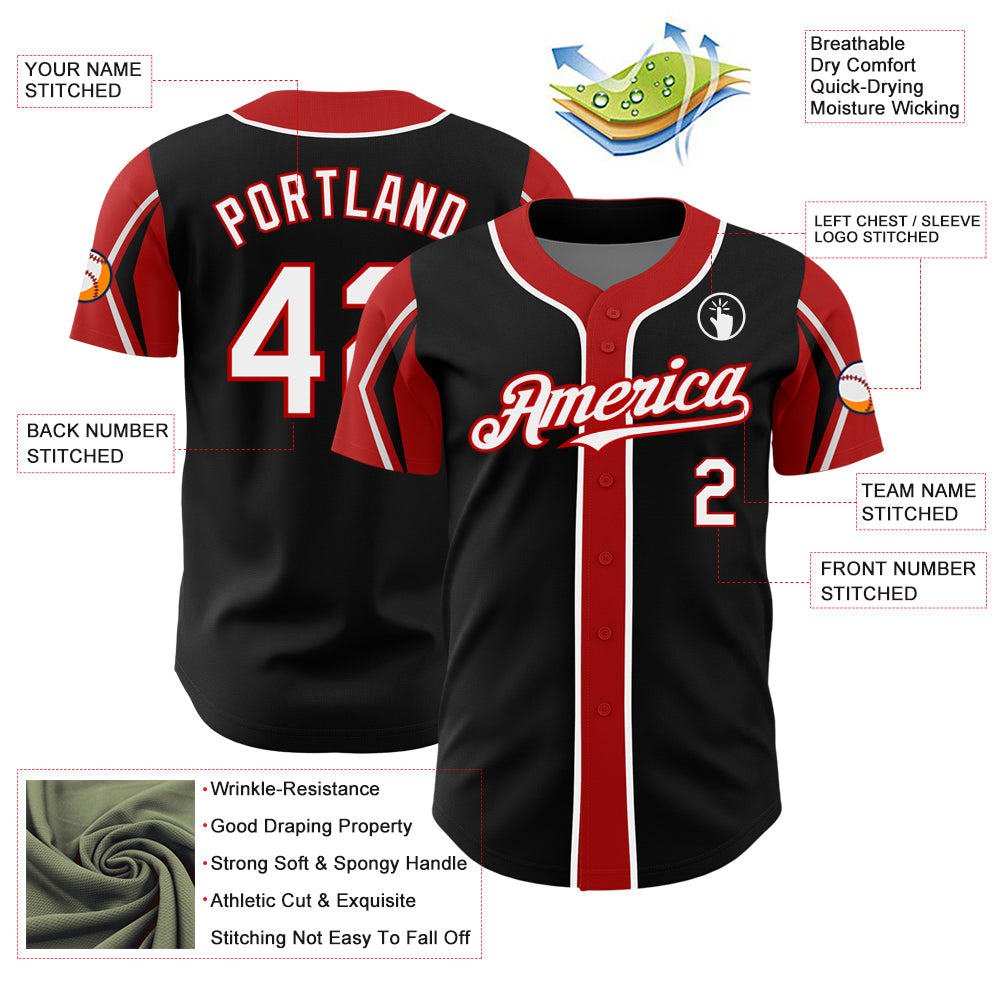 Personalized Black White-Red 3 Colors Arm Shapes Authentic Baseball Jersey Team Custom Name and Number