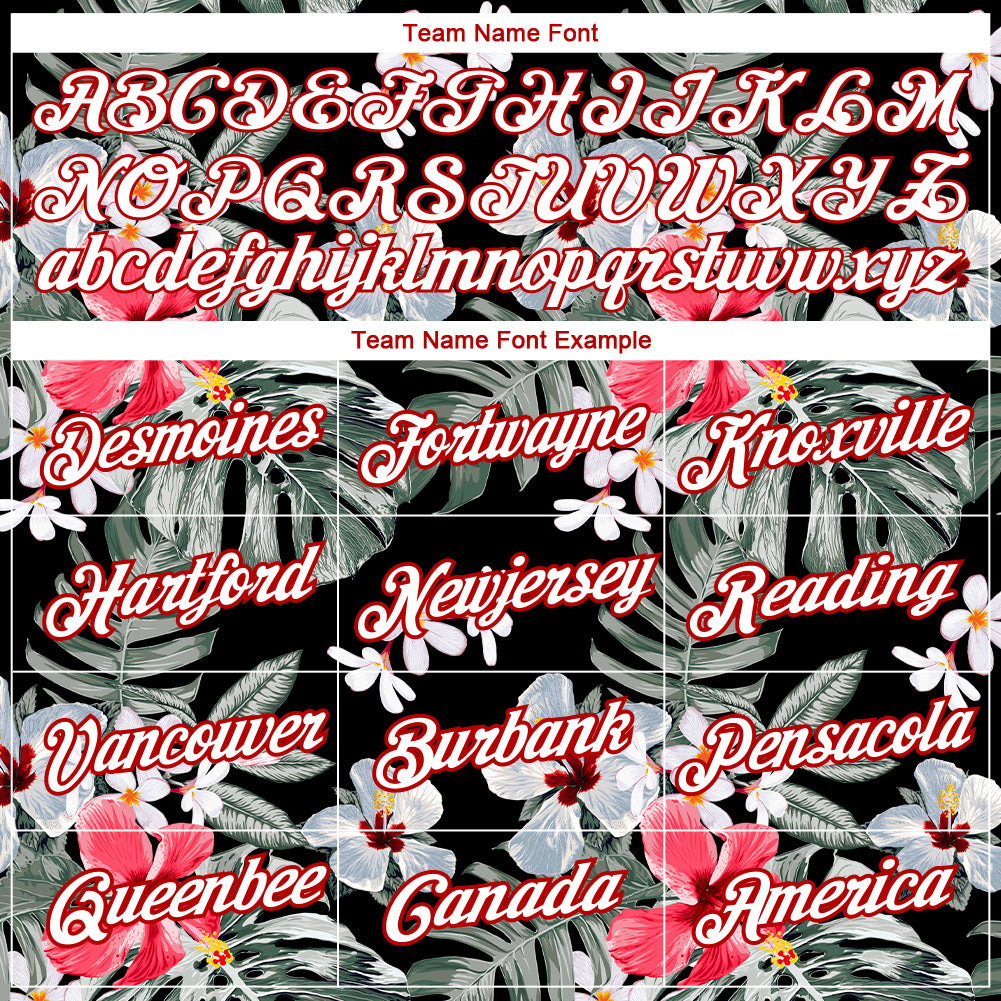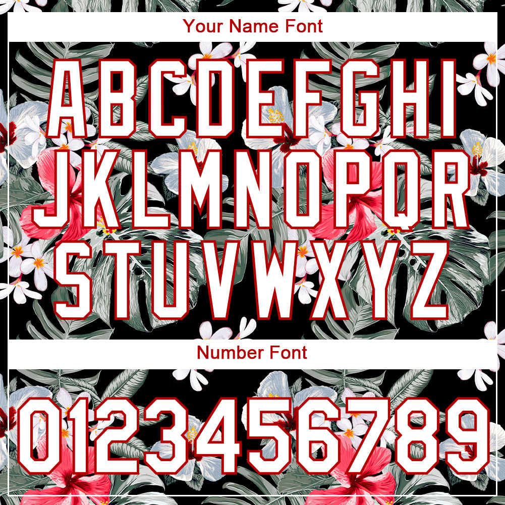 Personalized Black White-Red 3D Pattern Design Tropical Hawaii Plant Performance T-Shirt Team Custom Name and Number