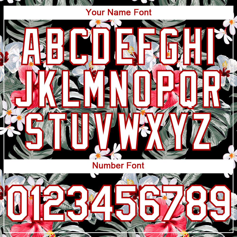 Personalized 3D Tropical Hawaii Plant Baseball Jersey in Black White Red Personalized Black White-Red 3D Tropical Hawaii