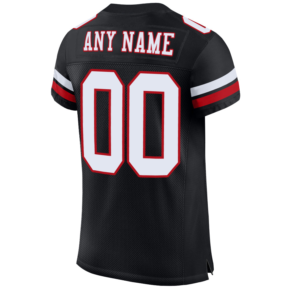 Personalized Black White-Red Mesh Authentic Football Jersey