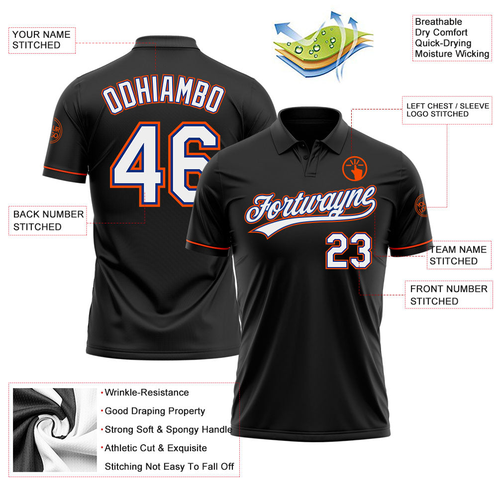 Personalized Black White Royal-Orange Performance Vapor Golf Polo Shirt