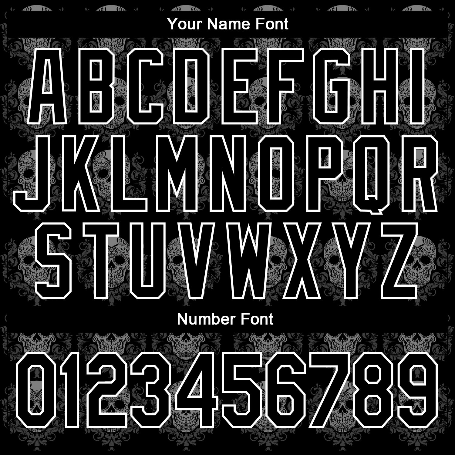 Personalized Black White Skull Fashion 3D Bomber Full-Snap Varsity Letterman Jacket Team Custom Name and Number