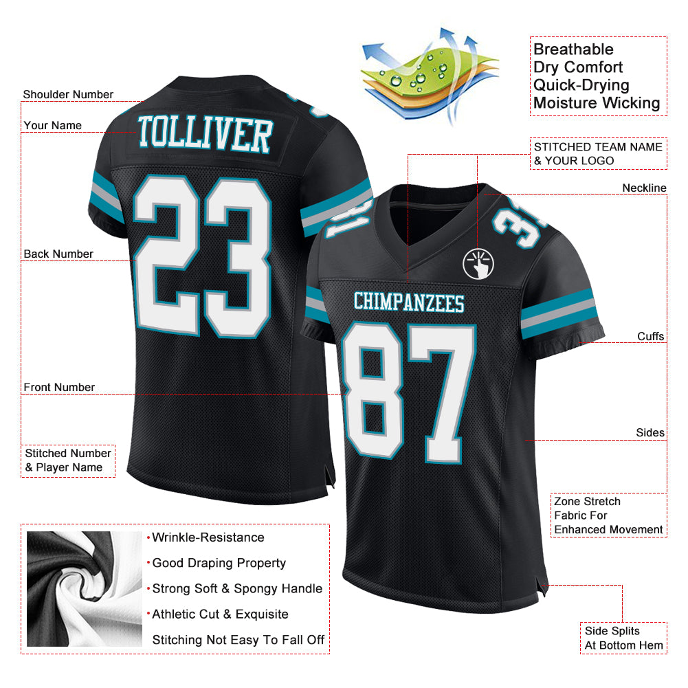 Personalized Black White-Teal Mesh Authentic Football Jersey