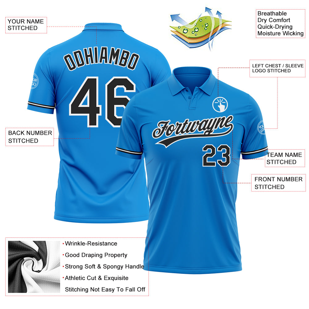 Personalized Performance Vapor Golf Polo Shirt in Blue Black-White Personalized Blue Black-White Performance Vapor Golf Polo