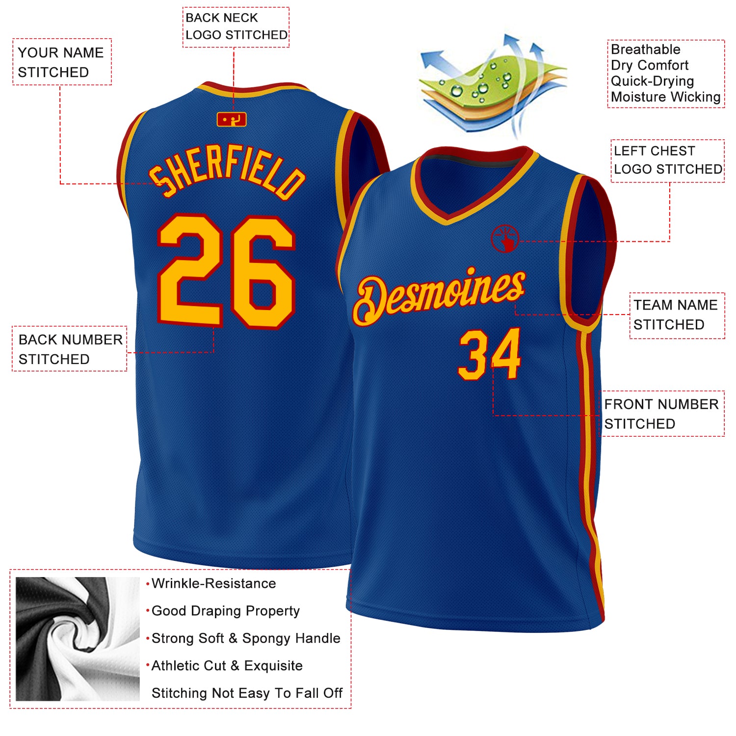 Be the first to review “Personalized Blue and Red Throwback Basketball Jersey for Men and Women Personalized Blue Gold-Red Throwback Basketball Jersey”