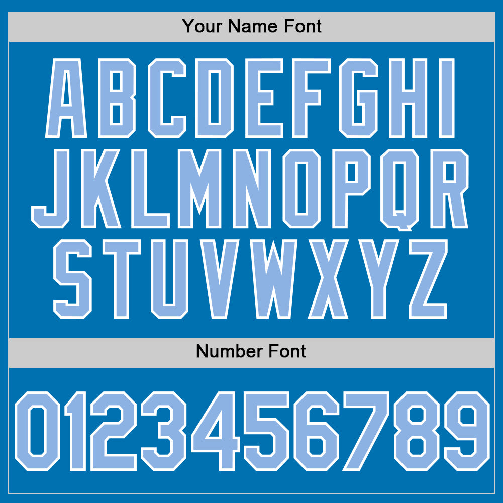 Custom Blue Light Baseball Jersey in Blue-White Design Personalized Blue Light Blue-White Baseball Jersey